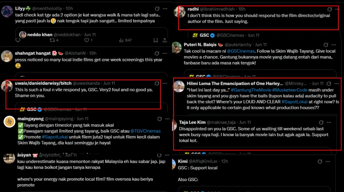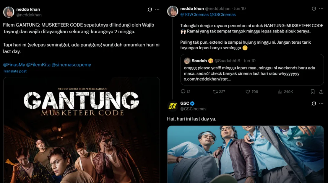 Some criticised the cinema company’s dismissive response to the director, while others pointed out that the film’s inconvenient release date, coinciding with Hari Raya Haji, was not taken into account. Fans also accused GSC of hypocrisy, pointing out that while the company has often encouraged Malaysians to support local films, it refused to extend the cinema run of “Gantung: Musketeer Code.”