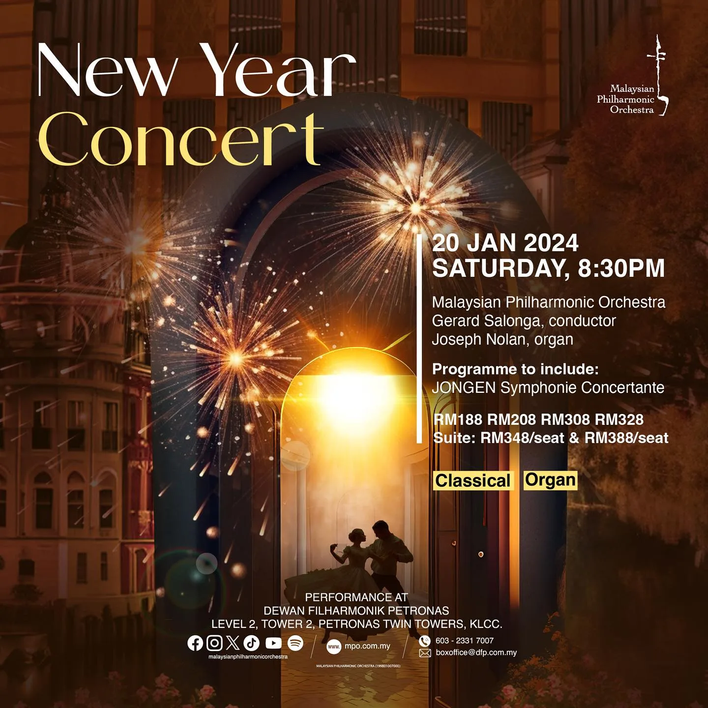 Continue your celebration of 2024 with beautiful melodies, captivating waltzes and lively polka, performed by the talented musicians from the Malaysian Philharmonic Orchestra! The programme will be led by conductor Gerard Salonga and feature the majestic Klais Pipe organ played by Joseph Nolan. Click here to get your tickets!