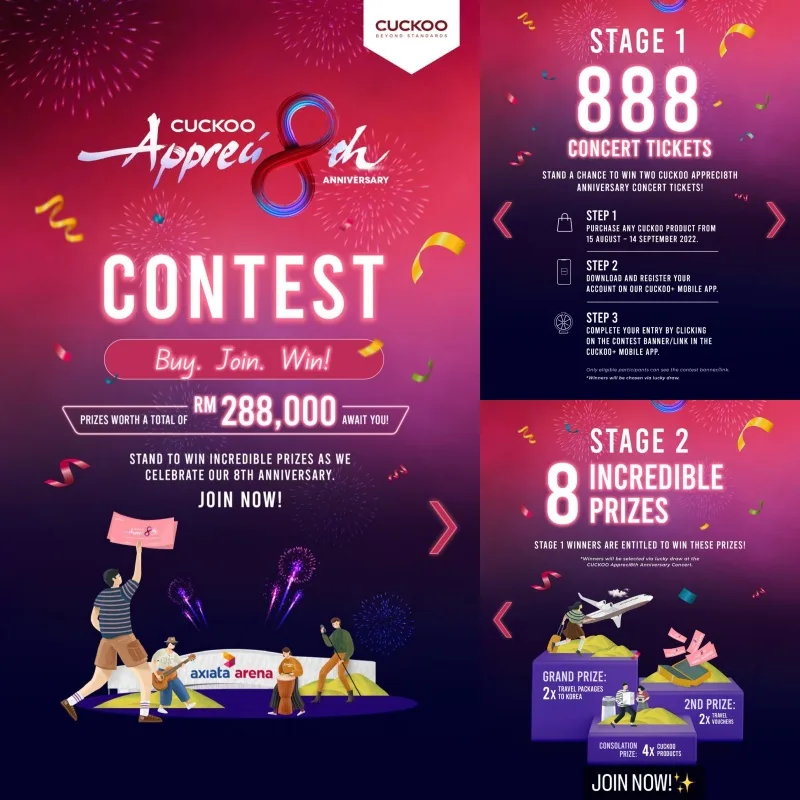 Do you love CUCKOO products? Do you want to spend your night full of stars and awesome music? If you answered yes, then get ready as CUCKOO Malaysia is inviting everyone to celebrate their 8th Anniversary and they’ve got lots in stored for you!