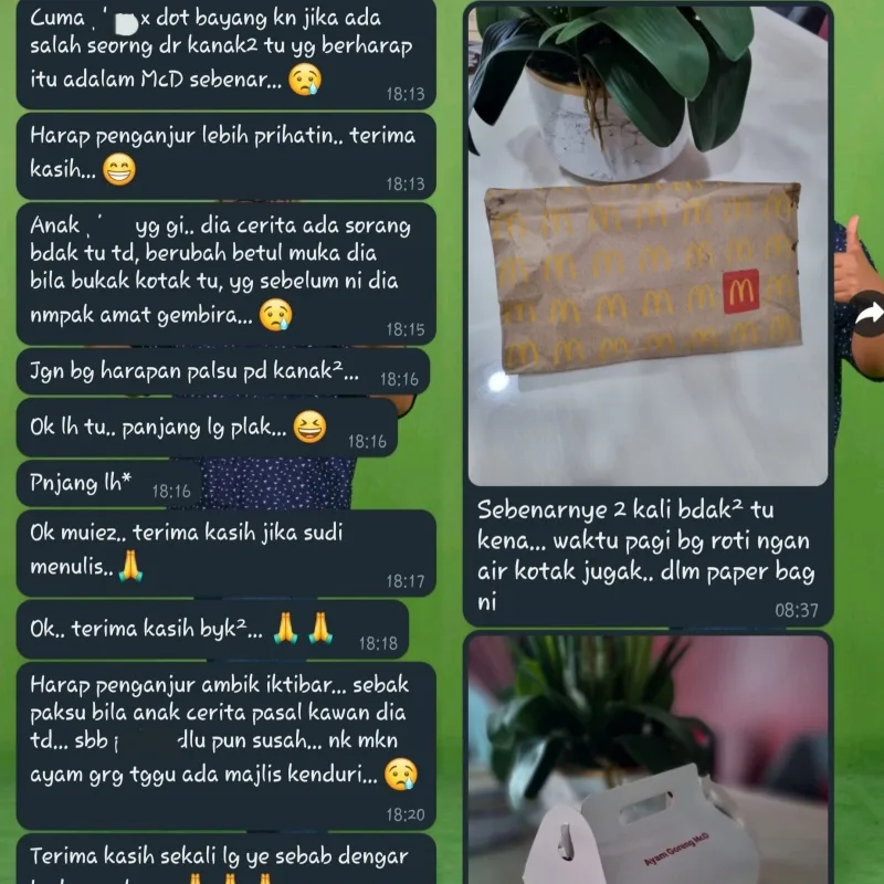 The child’s guardian expressed how sad they were to see their kid being tricked like that. “[The organiser] shouldn’t have given the children false hope. They should be more concerned and attentive about this,” they wrote in the Whatsapp message. In a follow-up message shared in the comments, it appears that this was the second time it happened as earlier, the children were given the same food in a McDonald’s paper bag, again, tricking them into thinking it was actually McDonald’s.