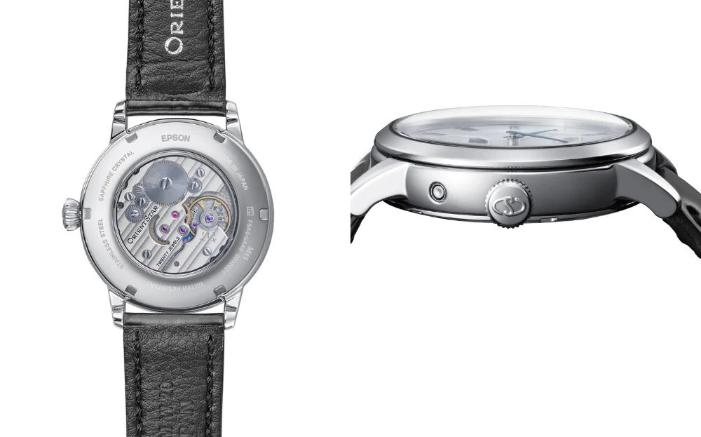 The Classic Collection M45 is composed of classical designs symbolising the grandeur of the universe and eternal passage of time–themes connected to the star cluster Pleiades. The new M45 F8 Mechanical Moon Phase Hand Winding model has a new, minimalist design, expressing the theme of “a graceful passage of time”, and is composed of hour and minute hands to tell the time, as well as a power reserve indicator and moon phase display, both iconic Orient Star features.