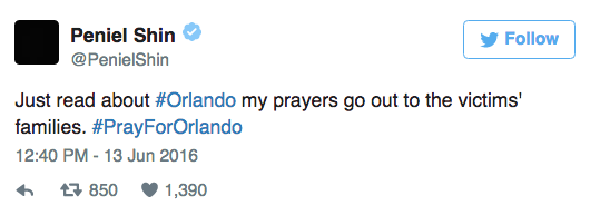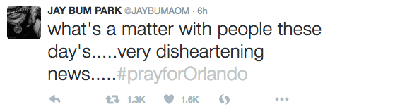 South Korean celebrities such as Jay Park, G-Dragon of BIGBANG, Amber of f(x), Peniel of BTOB, Jo Kwon from 2AM, CL of 2NE1, and Brian of Fly to the Sky left messages of condolences to the victims as well as their families, and condemned the actions of the gunman responsible for the death of over 50 people in Pulse Orlando, dubbed as the “hottest gay bar” in the heart of Orlando.