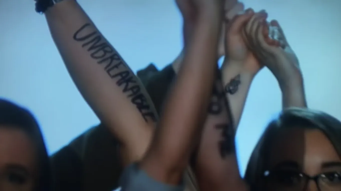 Joining her onstage for her emotional performance of the powerful song was a group of sexual assault survivors with the words “Not Your Fault”, “Survivor”, and “Unbreakable” written on their arms. Towards the end of the song, they surrounded Lady Gaga at the piano before clasping their hands for a dramatic finale. The climatic end received a standing ovation from the attendees of the awards.
