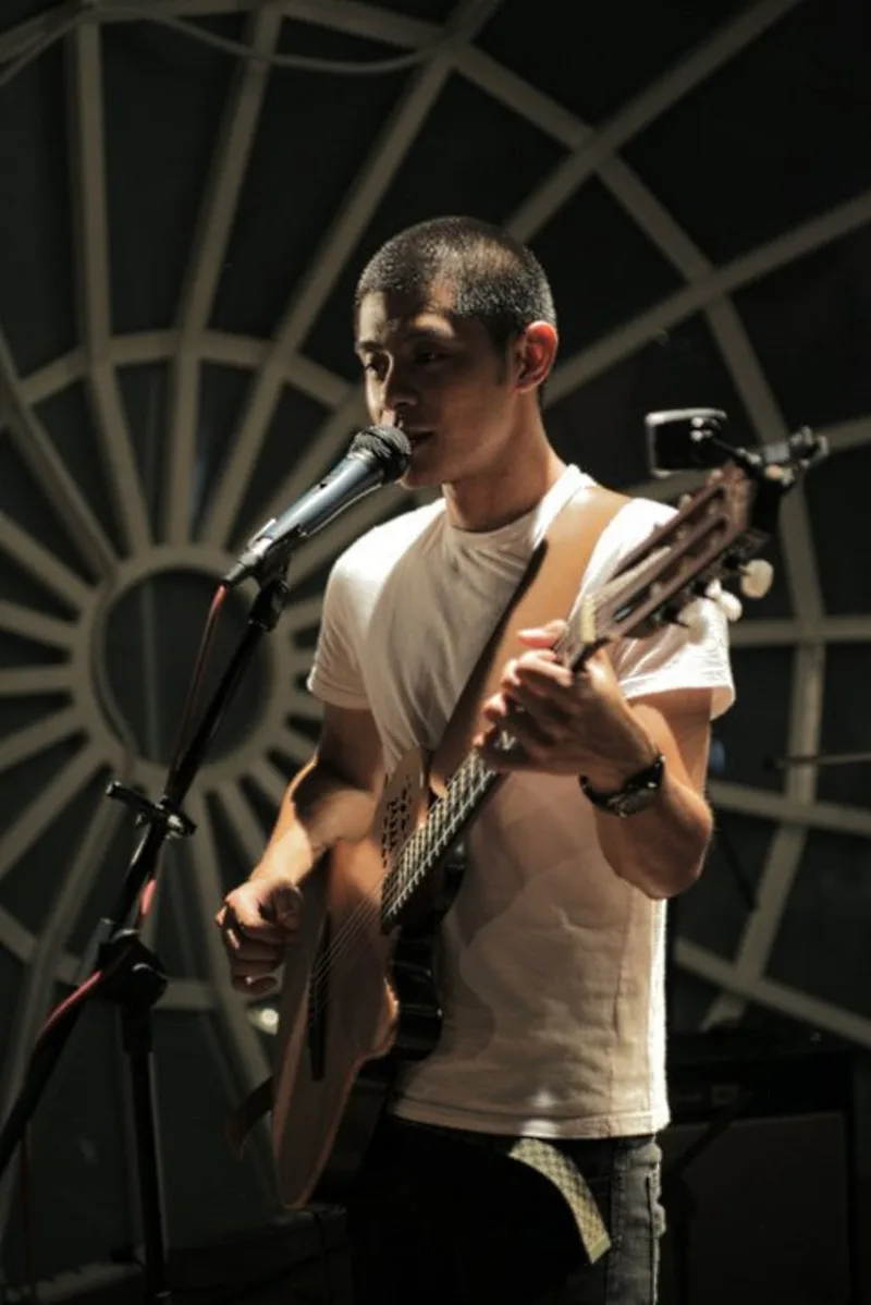 How odd is it for a person who’s so used to being the drummer of a local pop punk band (One Buck Short aka OBS) to be performing his own solo songs, armed with nothing but a genuine voice, a mic, and his trusty guitar? We’re not only talking about the abrupt change in musical style per se – but also the quite obvious (and literal) shift in stage spots.