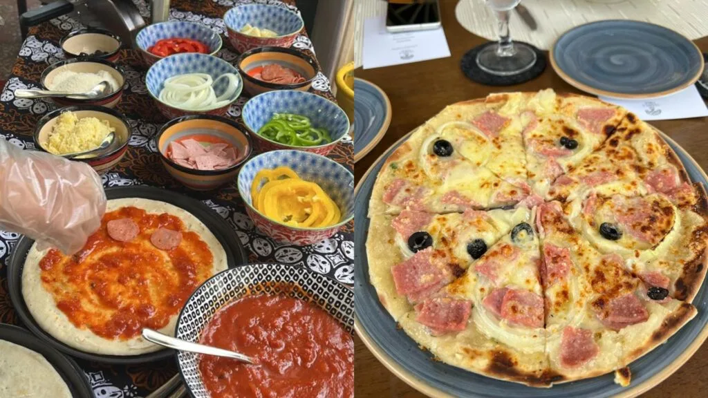 After gulping down our refreshing beverage, we headed for a quick lunch at The Temple Tree Bar & Restaurant, located within the Ipoh House (basically, the reception area). What we loved about this dine-in area is that it offers a retro-chic vibe with a pinch of heritage. The food served has a mix of traditional Malaysian, Asian and even international cuisine. For our lunch, we had to make our own pizza. They’d prepared all the ingredients for us, so we just had to create them however we liked. It was indeed a fun thing to do, because we got creative and shared it amongst ourselves.