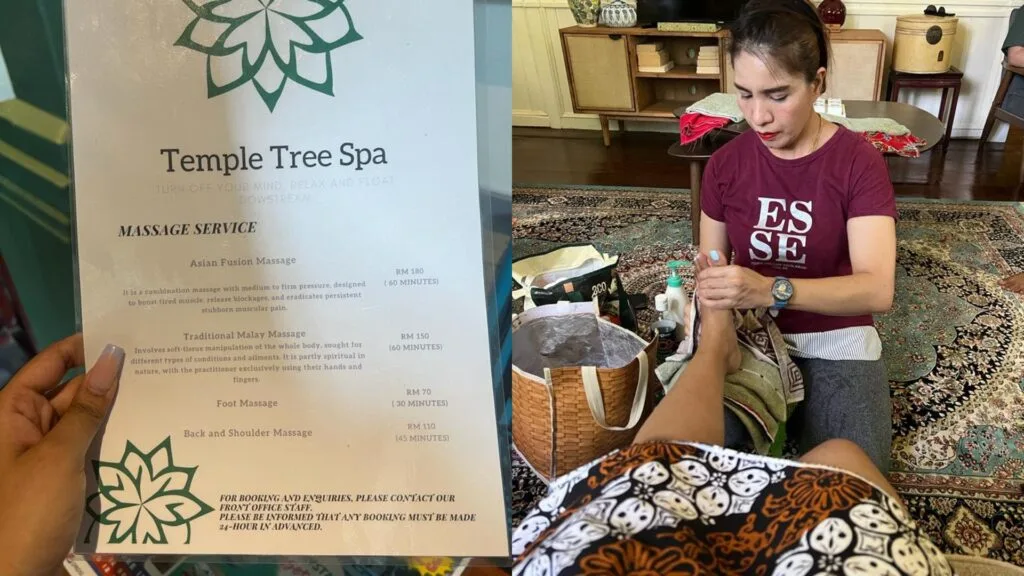 To make our stay extra fun, we were given a complimentary massage session. The Temple Tree Spa offers a few massage services, namely Asian Fusion massage, traditional Malay massage, back and shoulder massage and foot massage. Seeing that we had been walking around so much, the best option was the foot massage. We could tell that the masseurs really knew what they were doing because when they began to massage our feet, they were able to tell us if there was anything wrong with our digestive system or our body.