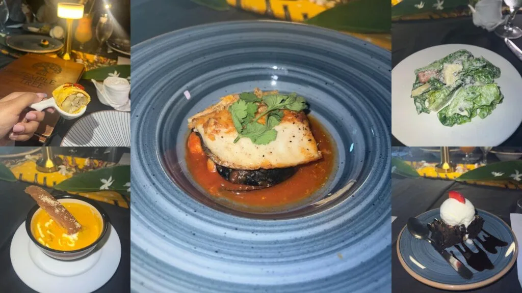 At about 7pm, we headed for dinner at The Temple Tree Bar & Restaurant. We had a 4-course-meal that began with Bruschetta & Nachos Chili Con Carne. Both appetisers had so much deliciously tangy flavour! Then, we had Pumpkin Soup – the creamiest pumpkin soup we’ve ever had (even though we aren’t really fans of pumpkins).