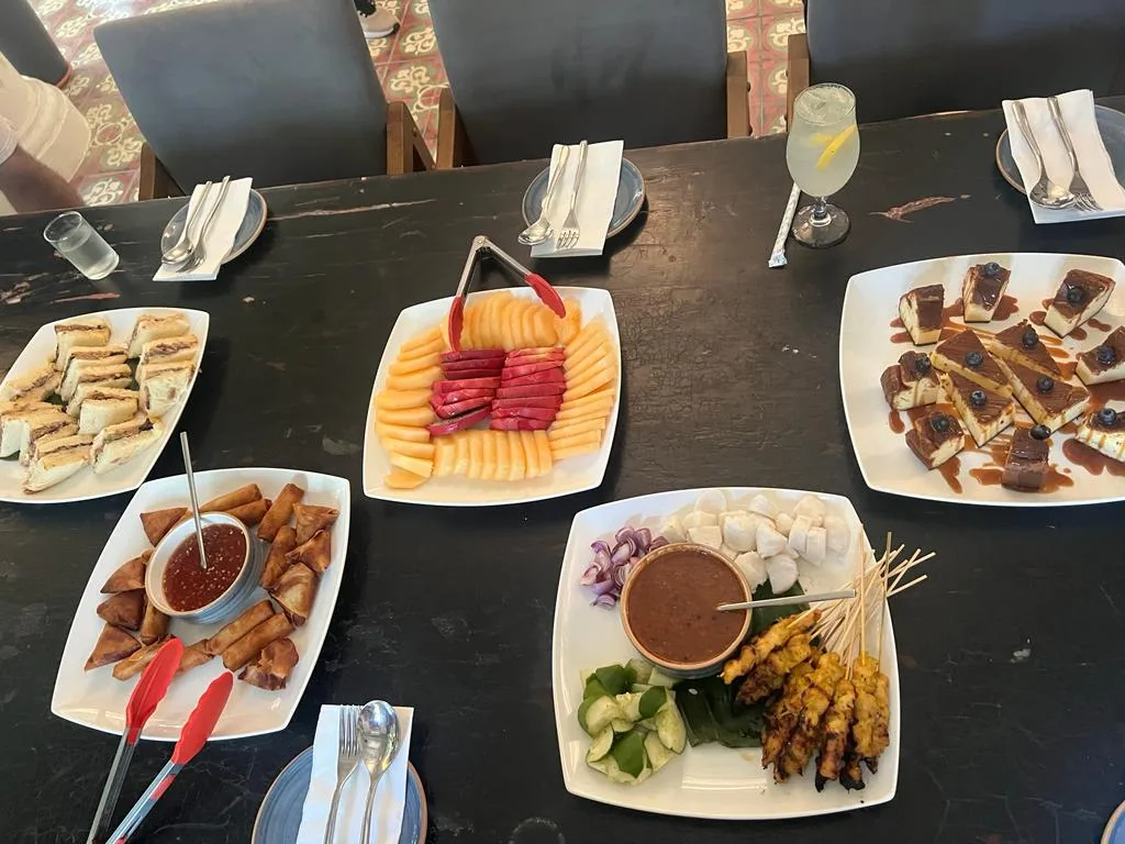 We had satay, tuna sandwiches, spring rolls, samosas, fried noodles, fresh fruits and homemade burnt cheesecake. The food was all good, but the one that interested us the most was the burnt cheesecake. Believe it or not, all the cakes and pastries served at Temple Tree Resort is handmade by their culinary chef. And the taste? Simply amazing!