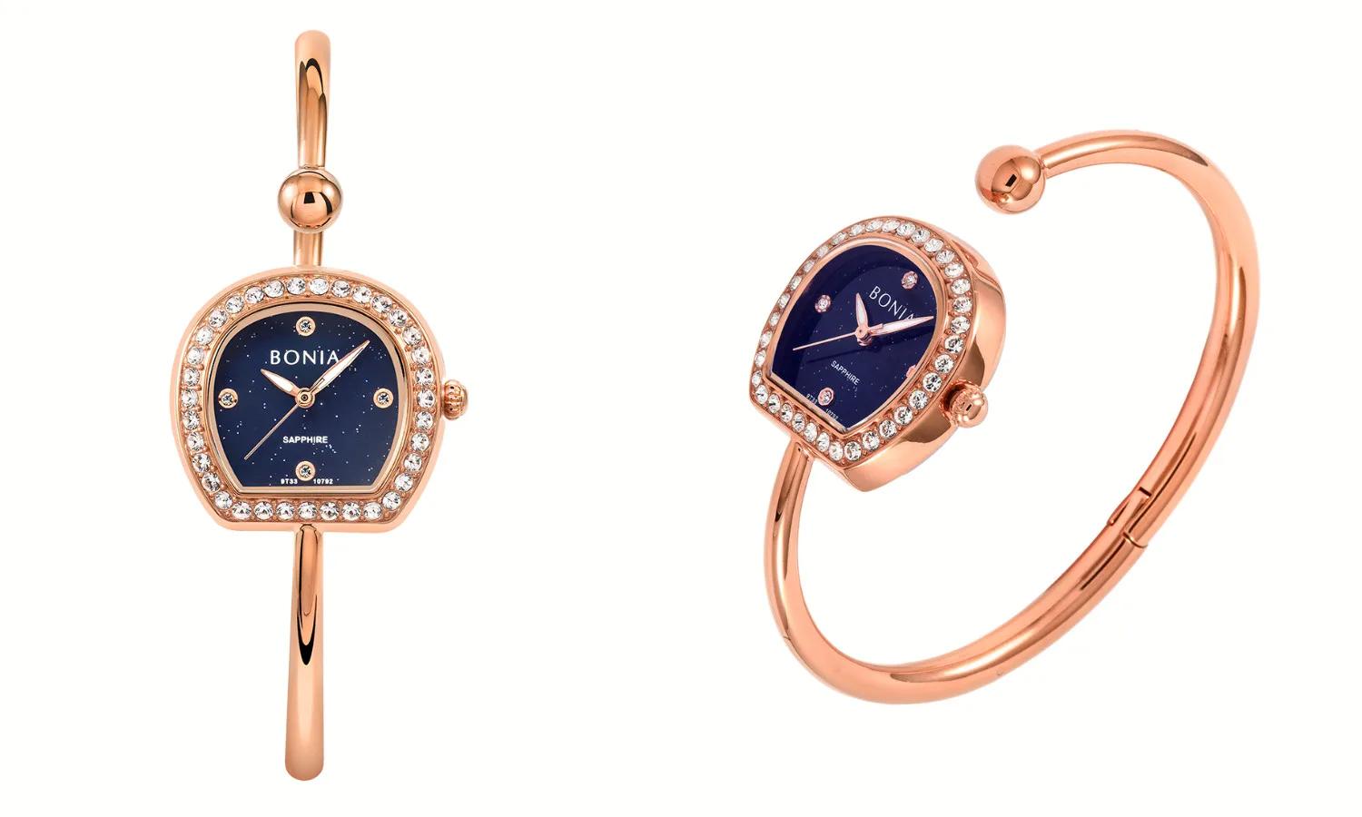 Completing the Sonia Bangle collection is BONIA’s hallmark attention to detail. Each timepiece features a laser-etched logo on the solid caseback, blending durability with refined elegance. Sculpted bangle-style bracelets ensure a perfect fit and make a confident style statement. More than a watch, each piece becomes a cherished companion, an enduring symbol of timeless allure and grace.