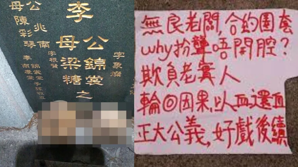 According to the villagers, they discovered the tomb had been damaged and the coffins were open. Additionally, two skulls had been placed provocatively in front of the grave. The skulls were found in front of the grave belonging to the second generation owner Lee Shiu Nan and his wife. As such, villagers assumed the skulls belonged to them. A note was also found accusing the company’s boss of being unscrupulous and “bullying the honest people“. “Why pretend to be deaf?” it asked. It promised karma and justice, with the ominous phrase “Blood for blood“. Additionally, the note alluded to further acts as it ended with “a good show to follow up“.
