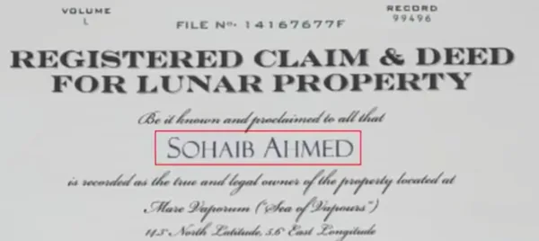 Sohaib Ahmed, 23, bought a land on the lunar surface and gifted it to his wife as a symbol of his love. He achieved his bucket list after purchasing a one-acre plot from the Lunar Settlement Initiative (LSI).