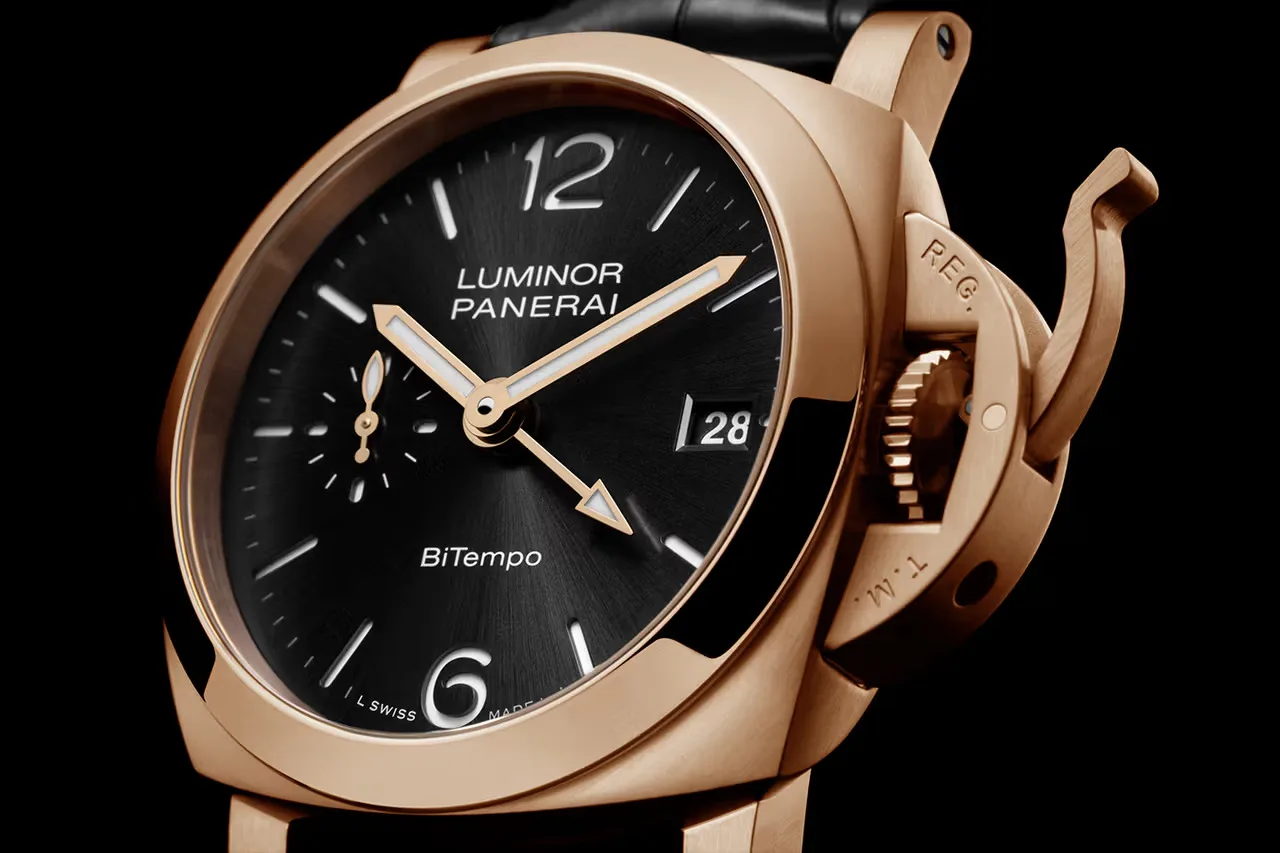 The Italian luxury watch manufacturer, Panerai, has unveiled the next step in watchmaking elegance as well as the brand’s latest addition to its stellar Luminor collection – the Luminor Quaranta BiTempo Goldtech PAM01641.