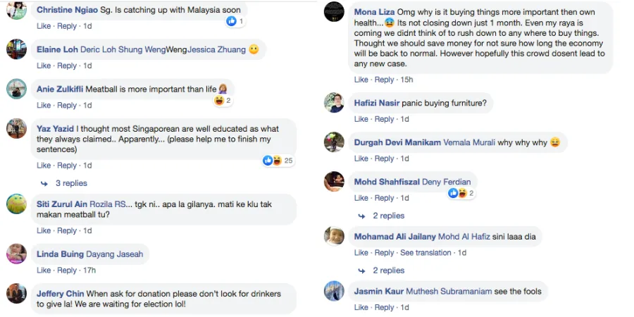 Now we know what items are essential to Singaporeans – Sofas and meatballs. #Singapore #Ikea #Covid19 #b4Lockdown #FirstWorldProblems pic.twitter.com/Is4t35CTuw