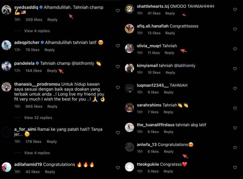 Scrolling through the comments. many of Abdul Latif’s followers, in addition to netizens, left congratulatory remarks to the sweet lovebirds. A few familiar names including former Youth and Sports Minister Syed Saddiq and also national diving queen Pandelela Rinong were also seen sharing their warm wishes as well!