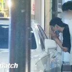 In the series of photos, Park – who will be discharged from his mandatory military service in late-August – and his fiancée can be seen hanging out on the side of the road while he smokes a cigarette. Park’s wife-to-be is also seen hugging him tightly in one of the shots.