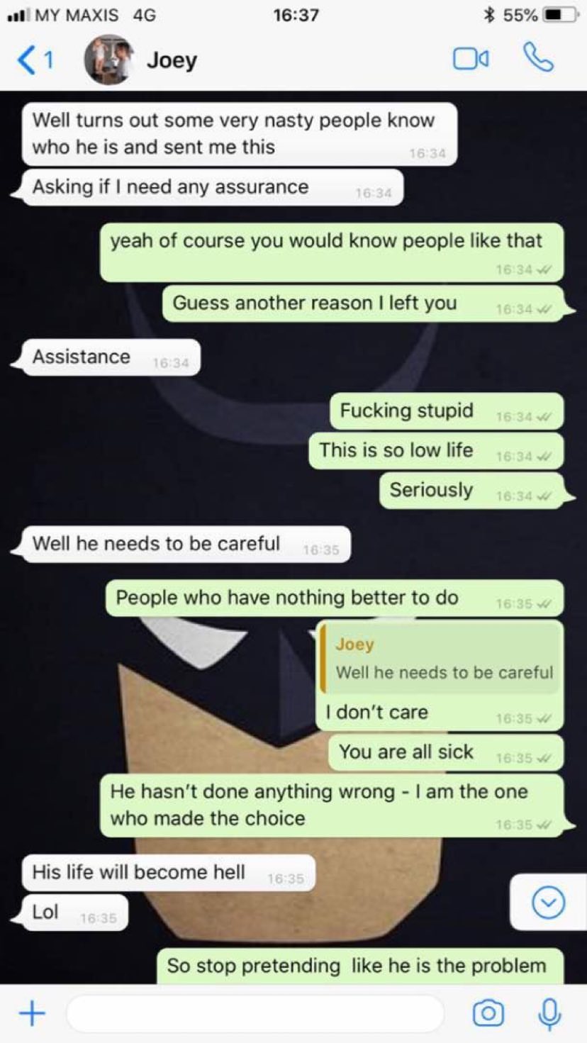 In those receipts, it was shown that Joey had once threaten to smash Matthieu’s head and to give him “f**king beating of his life”. There’s no indication of when this heated argument took place though.