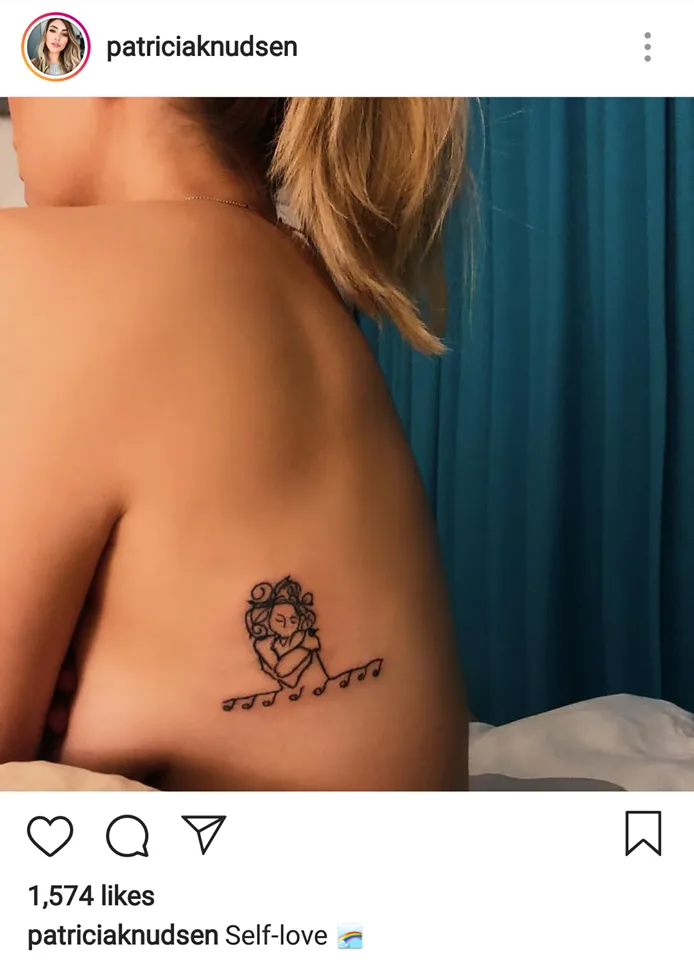 The photo shows a tattoo which looks like a woman hugging herself, which she captioned as “Self-love”.
