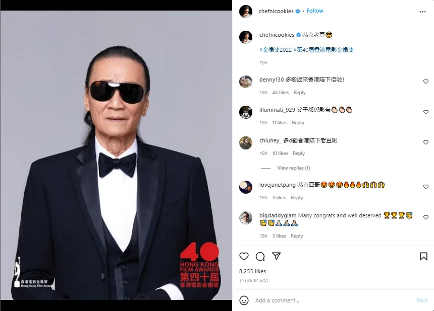 Nicholas had won the same award in 2011 during the 30th Hong Kong Film Awards. At that time, he had been recognised for his performance in “The Stool Pigeon (线人)”. The two are apparently the first father-son duo to win the best actor award.