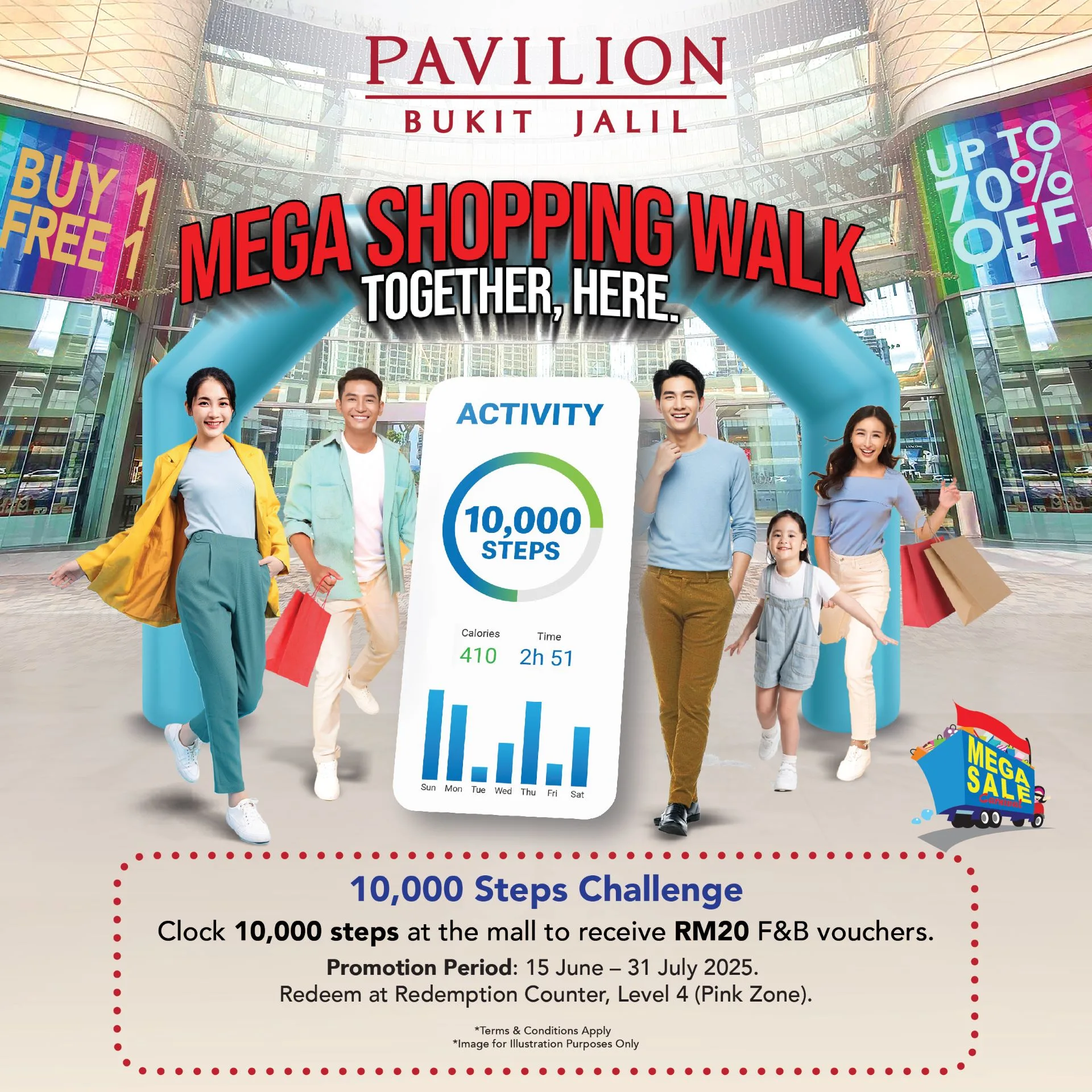 Recognising the growing lifestyle shift toward wellness and experiential retail, Pavilion Bukit Jalil introduces a walk-and-reward programme. Shoppers who achieve 10,000 steps within the mall premises will receive RM20 worth of F&B vouchers, perfectly blending shopping enjoyment with active living benefits. The initiative aligns with Pavilion Bukit Jalil’s vision of creating immersive, healthier mall experiences that extend beyond traditional retail boundaries.