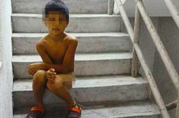 It was reported that an 8-year-old boy was stripped naked and chained to a staircase at a flat housing area in Paya Terubong, Penang by his father because he misbehaved.