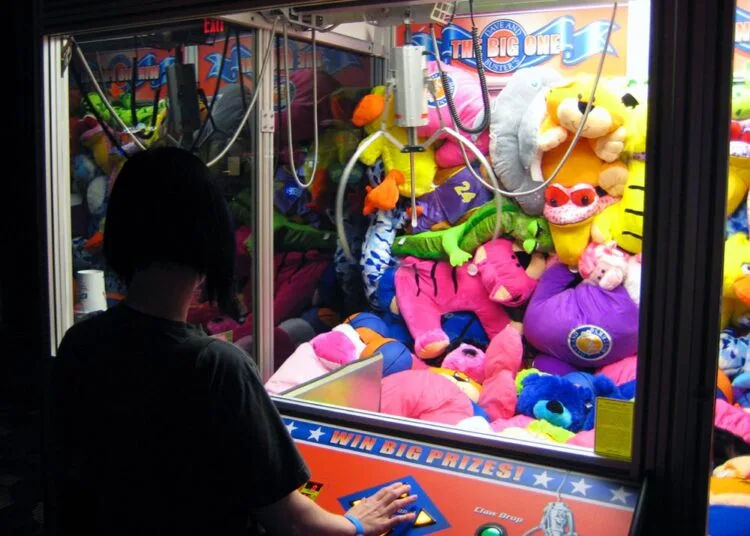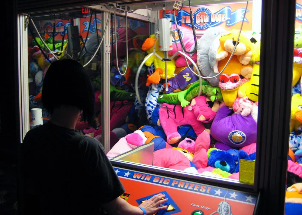 The “toy claw” machine, also known as the claw crane machine or claw machine, is a type of arcade game known as a merchandiser and is commonly found in video arcades, supermarkets, restaurants, movie theatres, shopping malls, and bowling alleys.