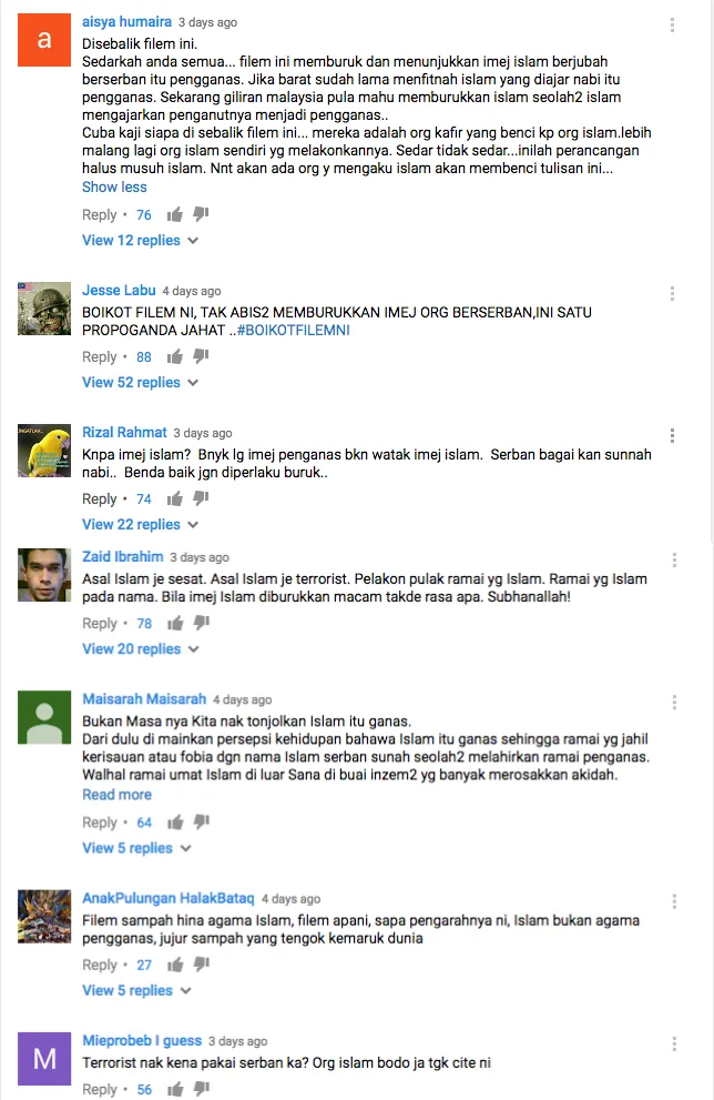 It all started when a certain group of Malaysian Islamists have claimed that the film brings bad image to the religion of Islam as it features a turban-wearing antagonist played by actor Hasnul Rahmat who takes on the role of a terrorist and main villain of the movie.