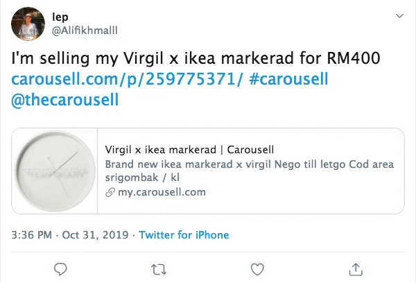 Not only that, some also took the advantage to re-sell the items online after purchasing them in stores – for an eye-popping price that exceeded the original number. As seen on the tweet below, the user is selling the “MARKERAD” white clock for a whopping price of RM400! Keep in mind that the original price of the clock is only RM129 – and the list of the selling items goes on as we’re saying.