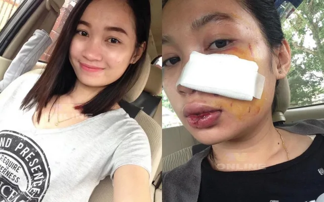 The victim, who is studying at a private college (IPTS) in Pasir Gudang, unfortunately encountered the man in front of the her home in Tanjung Puteri Indah, Johor at 1pm on Sunday (1st January). She received 14 stitches following the horrible attack.
