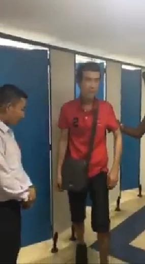 “I wanted to go to the washroom but the lavatory was too dirty, hence I cleaned it, after I finished, I noticed that (someone was) using a phone to record my actions! I shouted and the man withdrew his hand! I ran out in shock and also to seek help. Because it was too quiet, nobody heard my cries of help. Fortunately, there was someone in a nearby shop and I asked for their help. When the security guards came, I found out that the 3rd door was locked. 2 guards took a few photos and as expected, there was someone inside! After they shouted for him to come out, he finally did. When the pervert noticed that I was recording him, he still had the guts to stare at me! They took him to the security office and I believe that they will handle the matter. A warning to all fellow females, no matter which shopping mall you visit, please wash the lavatory. Also, remember to look around to make sure that no one is secretly recording you! Thank heavens, I was still fully dressed! Because I wore a dress today! This incident gave me a scare.”