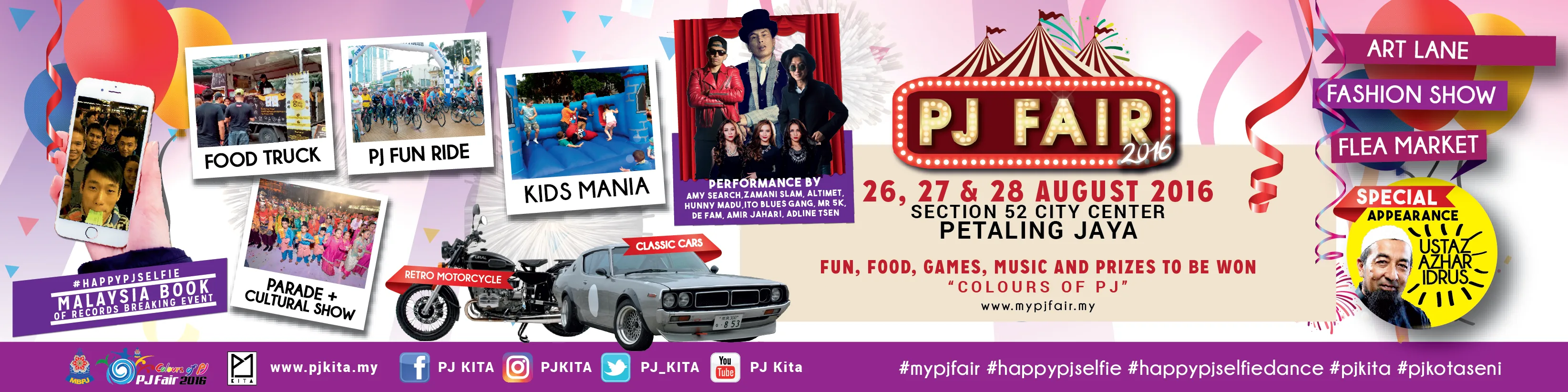 Themed “Colours Of PJ”, this year’s celebration will see celebrities such as Amy Search, Altimet, Hunny Madu, and more performing. 2016’s PJ Fair will be held at Section 52 City Centre, Petaling Jaya.