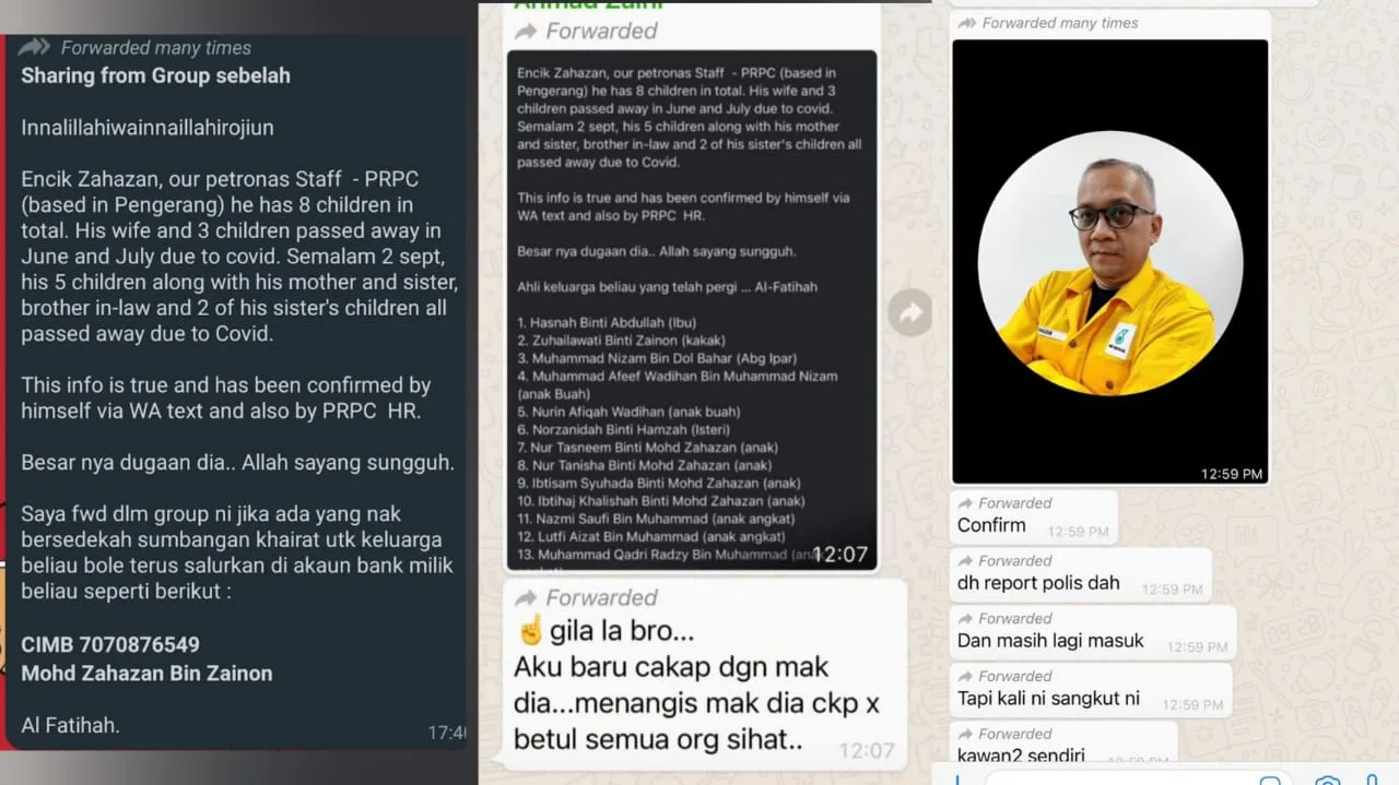 Berita Harian reported that Zahazan was accused of deceiving a colleague by falsely claiming that his family had died of the virus. The colleague then fell victim to the lie and was induced to deposit RM7,857 into Zahazan’s bank account. He was also charged with another similar offence to another colleague who deposited RM500 into his account as a form of donation.