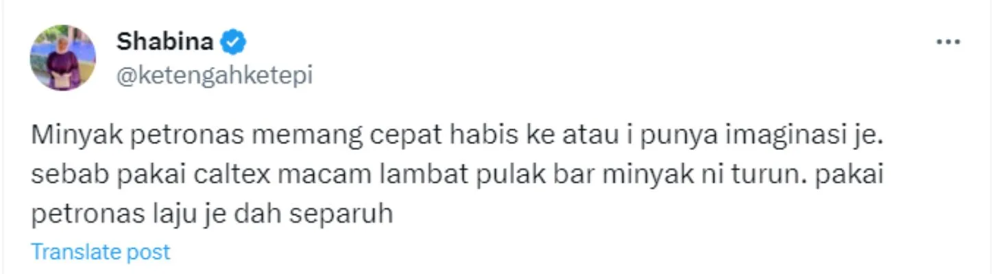 Twitter user Shabina recently tweeted, “Does Petronas’ fuel really run out faster or is it just my imagination? Because when I use Caltex, the fuel meter seems to decrease slowly. When using Petronas, it goes to half (the meter) quickly.” While it seemed like a curious observation, Shabina’s tweet sparked a debate amongst drivers.
