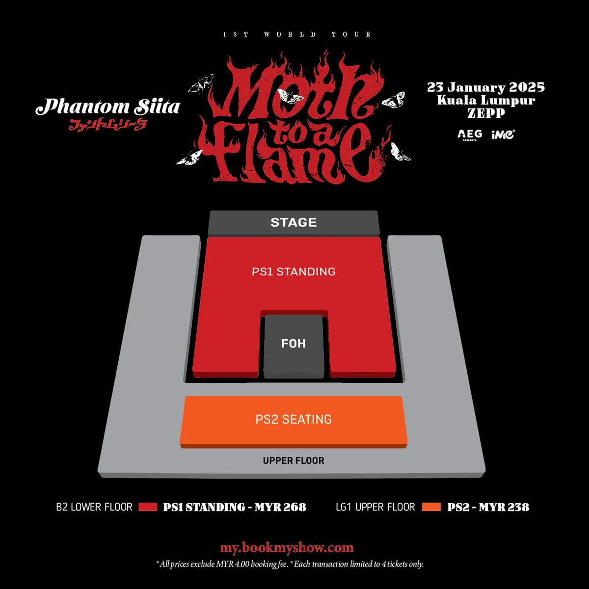 - Ticket Prices: VIP Package (includes 1 PS1 ticket): RM 988, PS1 (free standing): RM268, PS2 (seated): RM238