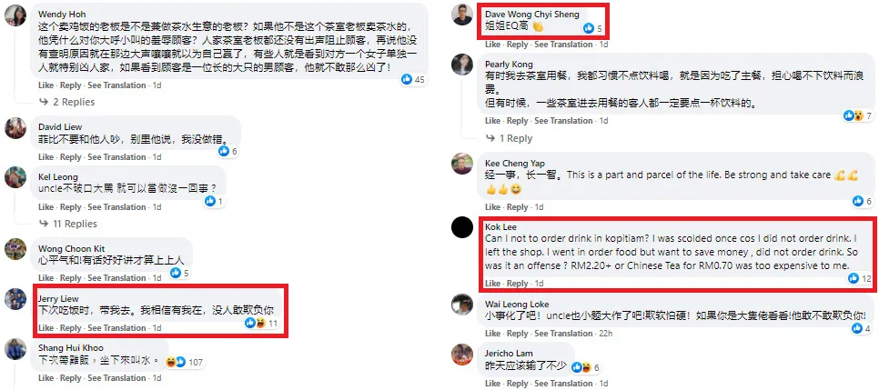 However, shortly after ordering, she heard someone “drinking loudly”. Startled, she looked up and saw an uncle who was running the chicken rice stall. He pointed at her and started shouting. “How are we supposed to do business (when there are) people like you who bring (outside drinks) in?” he supposedly scolded.