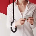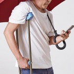 It’s basically an umbrella that sports a C-shaped handle that goes around your wrist like a bracelet, thus freeing your hand to text away and keep yourself as well as your smartphone dry at the same time.