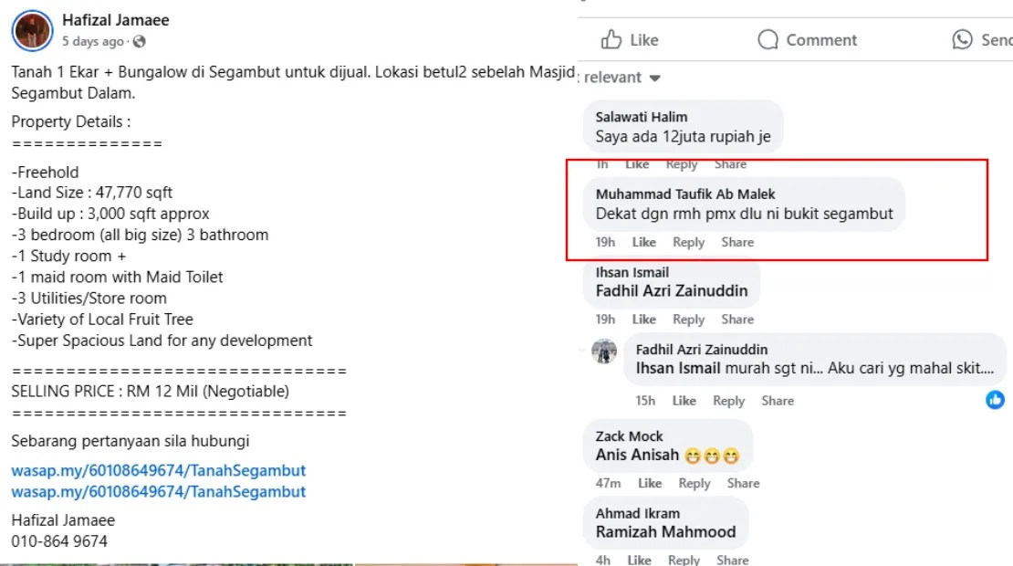 According to several reports by Harian Metro and Sinar Harian, this information is true. Although the politician has no ties to the viral house listing, his association with the area could partially explain why the bungalow is valued at RM12 million.