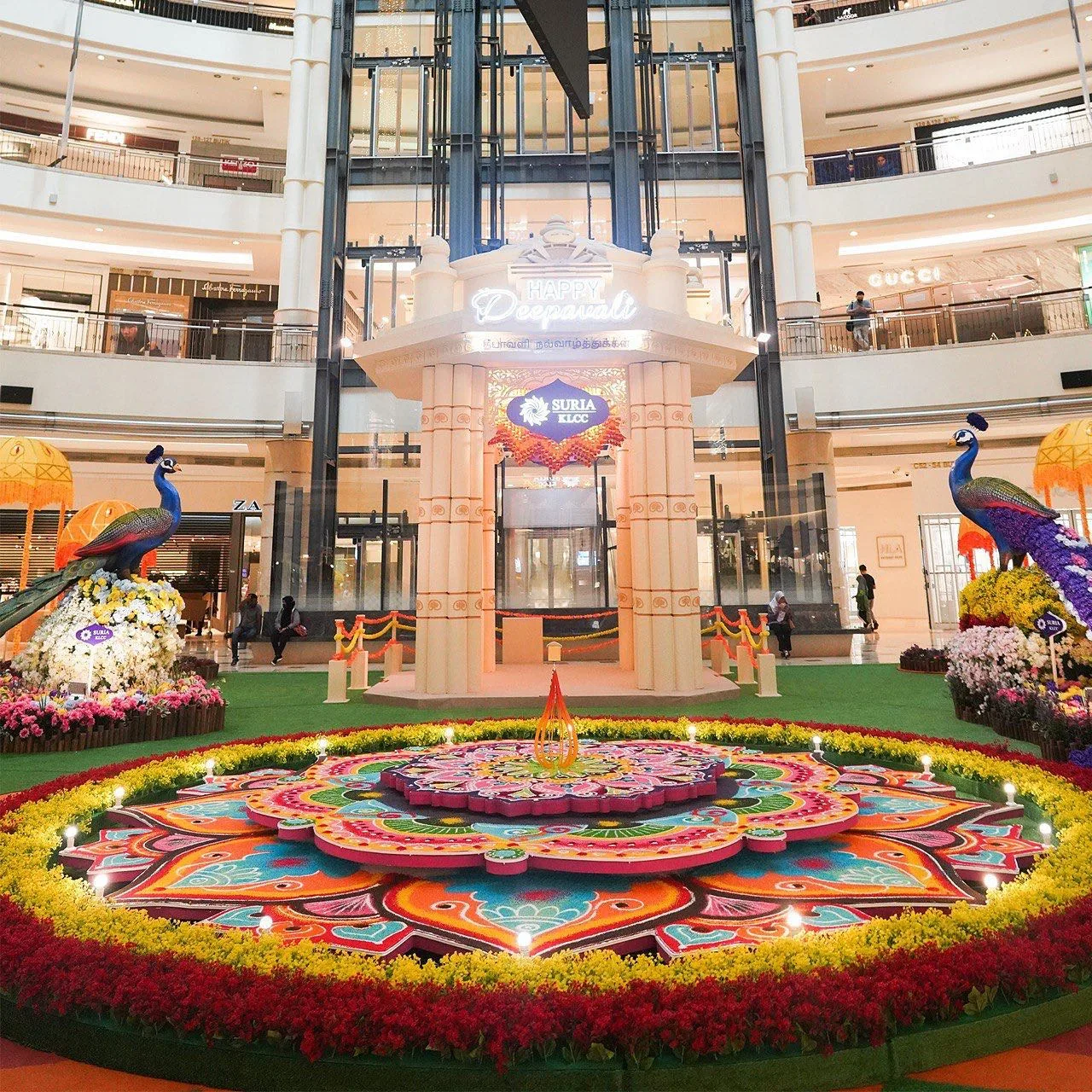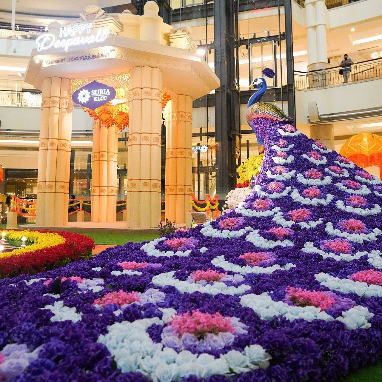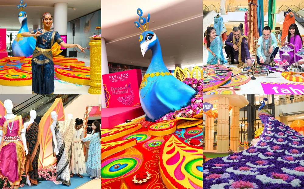Suria KLCC has transformed its Centre Court into a vibrant garden installation filled with floral peacocks and traditional Indian gazebo adorned with flower garlands. In the middle of the garden, visitors will see a 20-foot rotating kolam with motion sensor lighting that comes to life with multi-coloured lights. Visitors can also look forward to traditional Indian dance performances at the Centre Court on selected weekends.