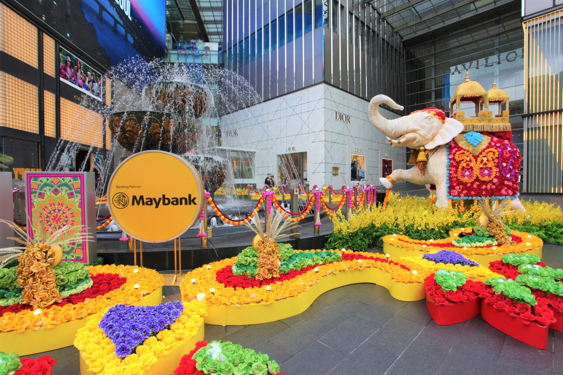 Pavilion Kuala Lumpur is celebrating a Majestic Deepavali this season. The iconic Crystal Fountain is now surrounded by glorious decorative elephants and colourful kolams with brightly coloured flowers, capturing the hues of the rainbow. For those familiar with Hindu culture, elephants are sacred symbols of peace, mental strength, and power, while kolams signify auspiciousness and good luck.