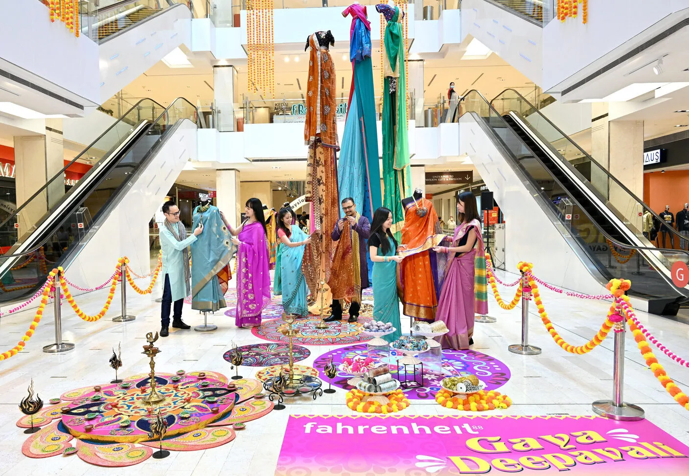 This Deepavali season, Fahrenheit88 is shining the spotlight on the Largest Saree Gallery featuring over 100 colourful sarees that showcase the beauty of styling traditional Indian fashion wear. In case you didn’t know, the mall recently welcomed its first Indian store – Yeshan Saree – on the second floor. There, patrons will get to feast their senses on a kaleidoscope of colours at the Art of Saree gallery where you can find sarees from all over India.
