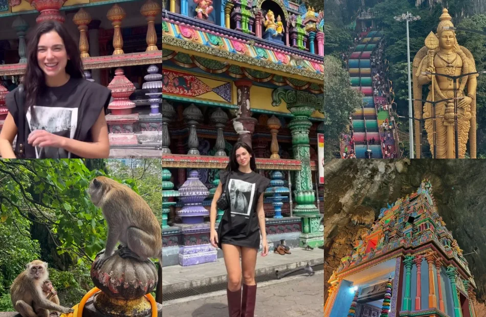 Yesterday (Monday, 25th November), Dua Lipa posted a carousel of photos and videos on her Instagram showing her time in Malaysia. “Thank you, KL!!! ❣️ Two very sweaty nights in your city!!!”, she wrote in her caption. The post not only featured her performing on stage at the arena over the weekend but also showed her visiting the iconic Batu Caves.