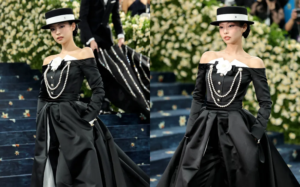 Another BLACKPINK member at the Met Gala is the one and only Jennie (제니). Naturally, the singer showed up in style, wearing a custom Chanel dress inspired by one of Karl Lagerfeld’s pieces from his Fall/Winter 1987 collection for the house.