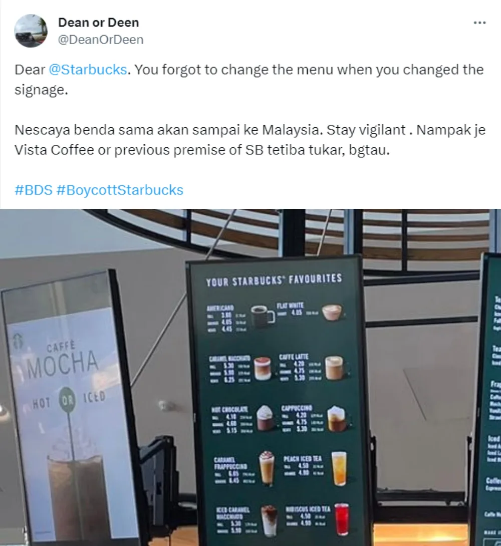 The rebranding claims quickly went viral, with many netizens, including Malaysians, sharing their reaction to the issue. Many slammed Starbucks for simply rebranding to save their company instead of retracting their support for the Israeli government in the ongoing Palestine-Israel war. Some even alleged that the rebranding strategy may happen in other countries, so locals should keep a lookout if any Starbucks outlets start changing to Vista Coffee.