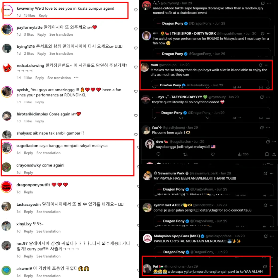 Shortly after posting the video and photos on social media, Malaysian fans were thrilled to see Dragon Pony enjoying their time in Kuala Lumpur. Many expressed hopes that the band would return to Malaysia for a solo concert in the future, while others were happy that our country is featured in their social content. Some were wondering if any fans saw or approached the members while they were exploring the city.