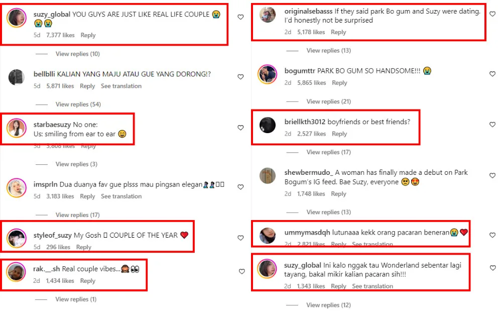 Many on-screen couples have brought up speculations of a real-life relationship with their great chemistry. Recently, South Korean stars Park Bo-Gum (박보검) and Suzy (배수지) sent fans into a frenzy with their couple-esque social posts, leaving many to wonder whether the on-screen couple are dating in real life.