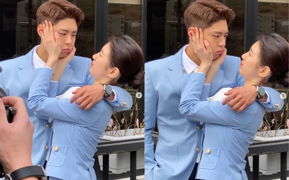 The two actors are starring in the upcoming movie, “Wonderland (원더랜드)”, alongside other big names like Tang Wei (汤唯), Jeong Yu-Mi (정유미) and Choi Woo-Shik (최우식). In an effort to raise anticipation for the movie, both Bo-Gum and Suzy have been sharing several behind-the-scenes videos and photos from their filming, showcasing their great chemistry. One of the recent photos comes from Bo-Gum’s Instagram account, where he is cosying up with his on-screen partner, even posing with their cheeks pressed together.