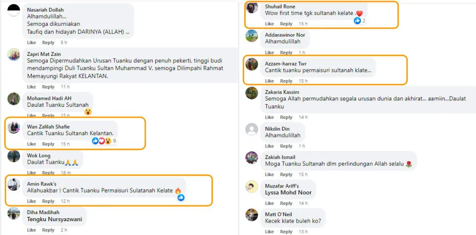 The FB posting has been flooded with many positive comments from netizens. Many were fascinated by Che’ Puan Nur Diana’s alluring beauty. “Tuanku Sultanah Kelantan is so beautiful,” Facebook user Wan Zalilah Shafie remarked. Another commenter, Shuhail Rone, expressed, “Wow, this is (my) first time seeing the Sultanah of Kelantan.”