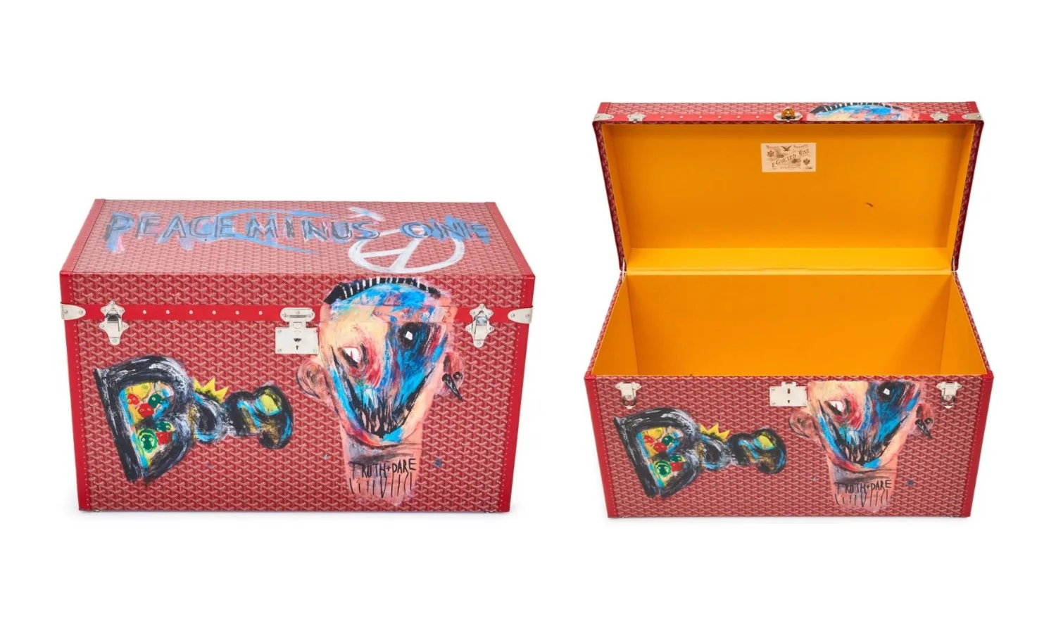 Personalised and hand painted by artist Lee Juri, this red Goyard trunk is reflective of a scene from BIGBANG’s “Loser” music video where he appears with “Truth Dare” written on across his neck.