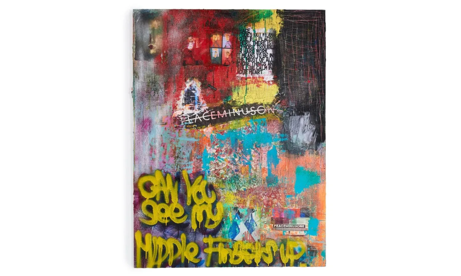 The “Crooked” singer created this painting during the production of his 2017 “Kwon Ji Yong” album. The artwork, which was used as the background for the original PEACEMINUSONE website launch, is a mixed-media piece, blending acrylic, spray paint, and collage on canvas.