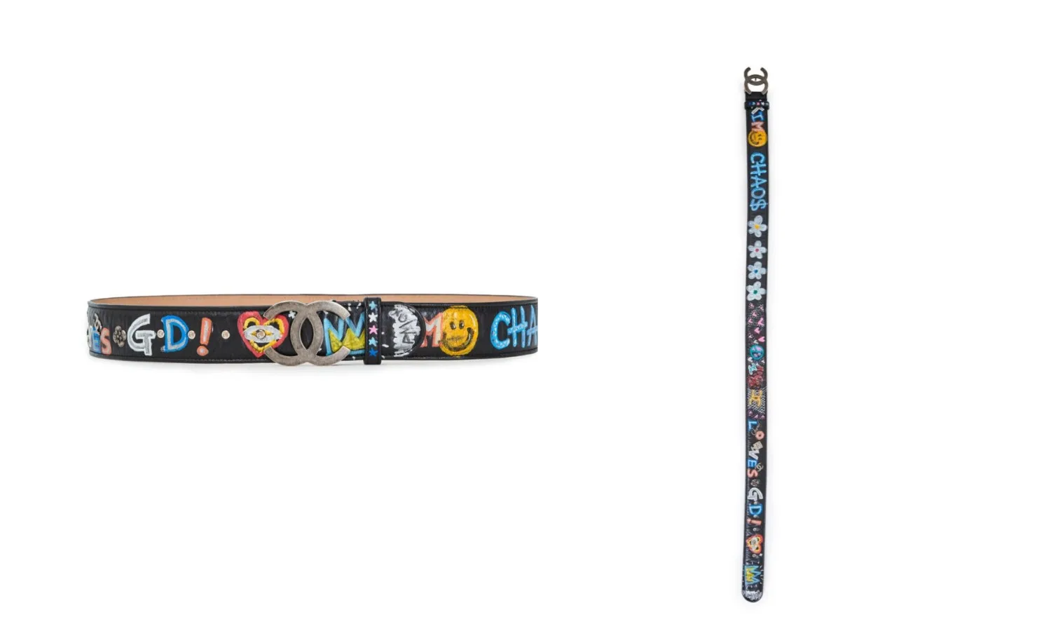 As Chanel’s first Asian male global ambassador in 2016, it is obvious that the rapper’s relationship and history with the brand go back many years. This black lambskin belt from the Chanel SS 2010 collection was hand painted by G-Dragon to read “Kim Chaos Loves GD!” with PMO and Chanel symbolic drawings.