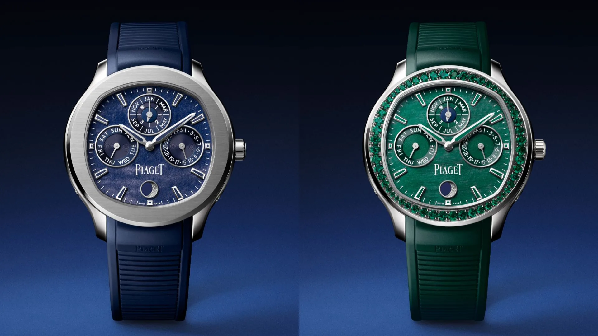 The Piaget Polo Perpetual Calendar Obsidian Blue and the exclusive Obsidian Green are available worldwide, with the Obsidian Green limited to only 18 pieces. Discover the collection now at Piaget boutiques or online.
